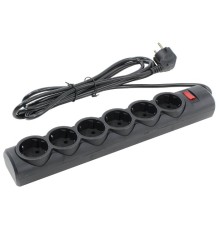 Длина кабеля: 3 м Дополнительная информация: автоматический предохранитель, защитные шторки на розетке, выключатель со световой индикацией Количество розеток: 6 Максимальная нагрузка: 2300 Вт Цвет: черный
